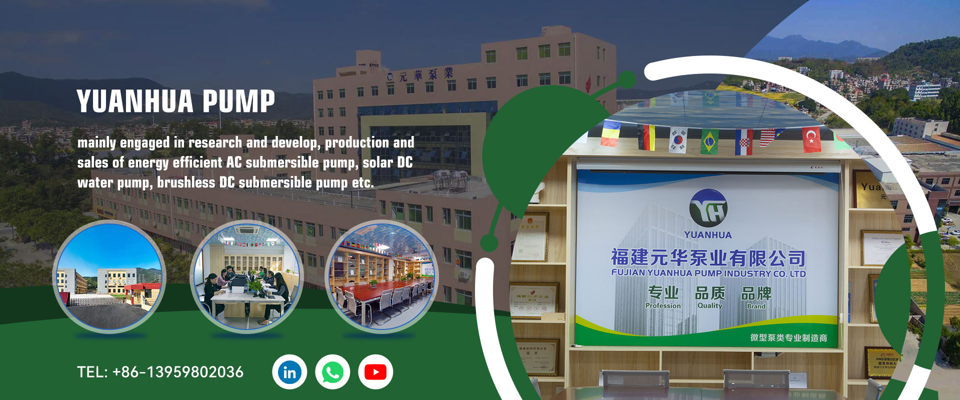 Tuttavia ora è una filiale: YUANHUA è principalmente impegnata nella ricerca e sviluppo, produzione e vendita di pompe sommergibili CA ad alta efficienza energetica, pompe dell'acqua solari CC, pompe sommergibili CC senza spazzole, ecc. I nostri prodotti sono ampiamente utilizzati nelle fontane artigianali, nei giardini, nell'irrigazione dei giardini, nelle automobili, nelle apparecchiature per la circolazione automatica dell'acqua, nei prodotti solari (fontana per il bagno degli uccelli), negli acquari per pesci, nell'attrezzatura per il pediluvio, nel refrigeratore d'aria. Inoltre aggiungiamo nuovi prodotti come la pompa di scarico per lavatrice e la pompa RO per depuratore d'acqua.